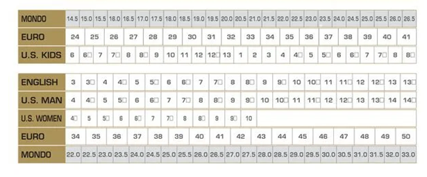 A sícipőméretek jobb megértéséhez az alábbi táblázatban megtalálja a nemzetközi cipőméreteket.